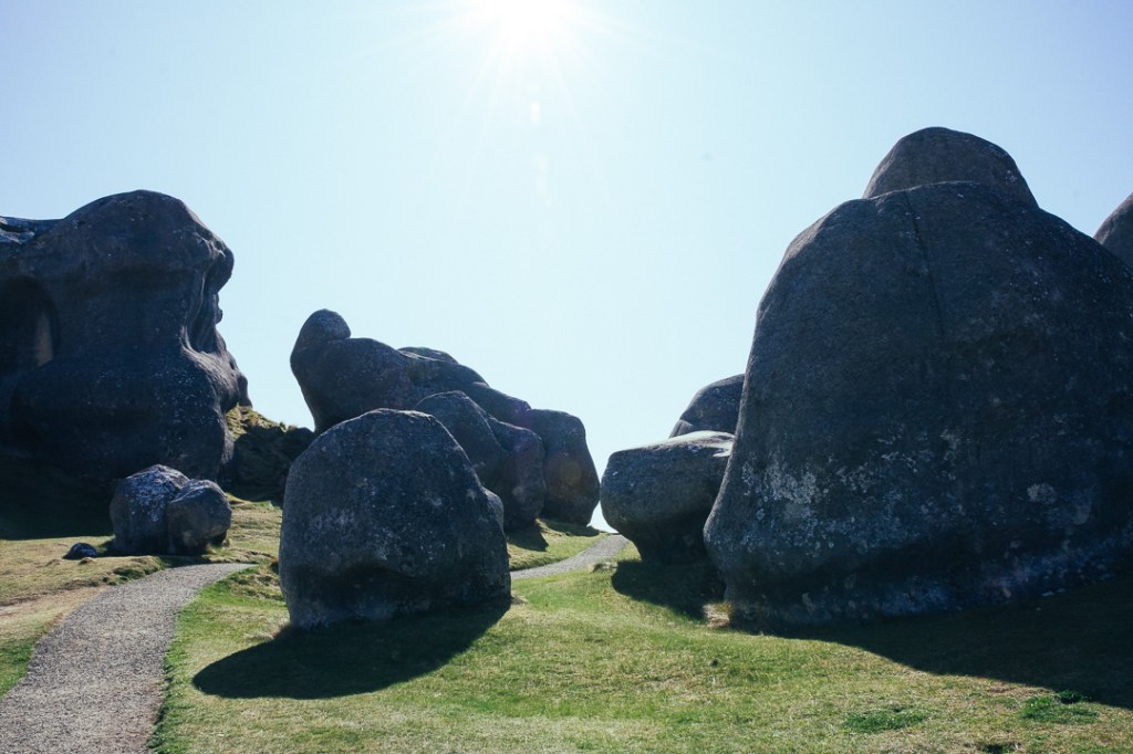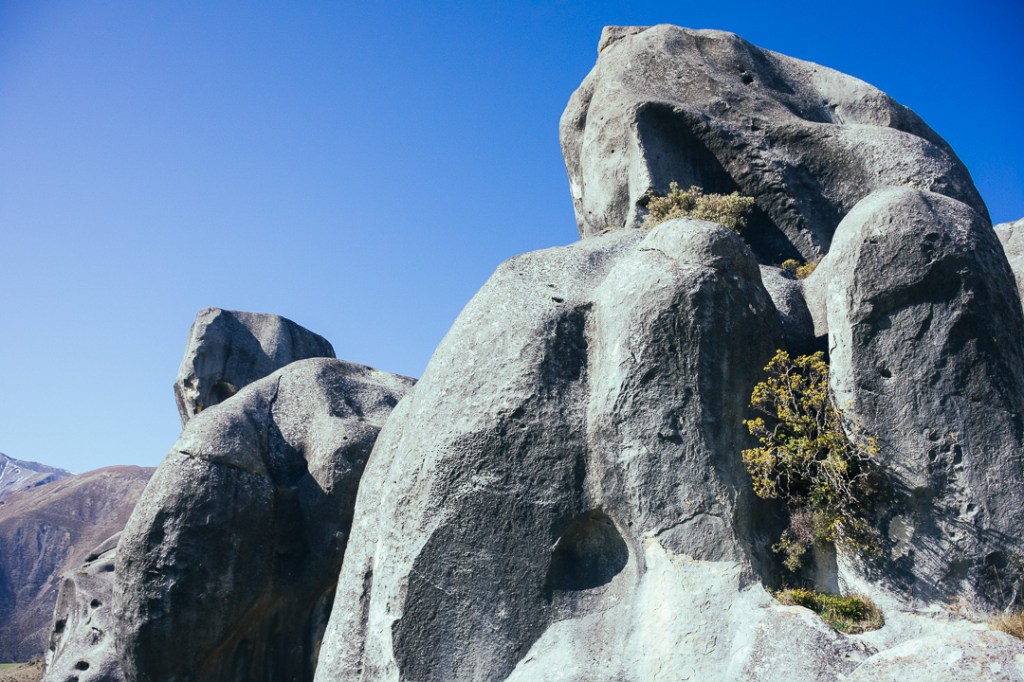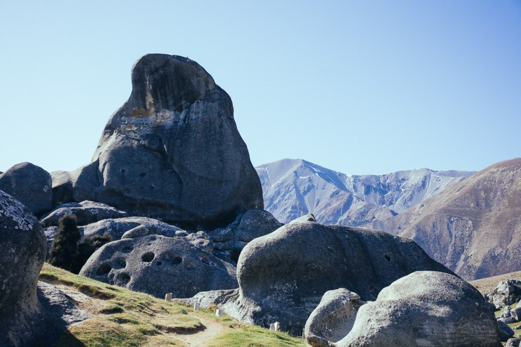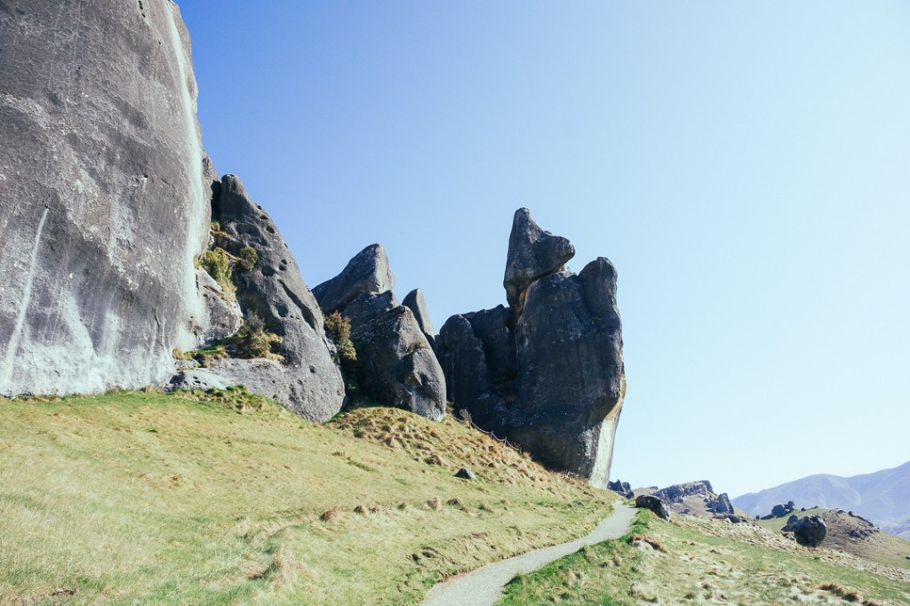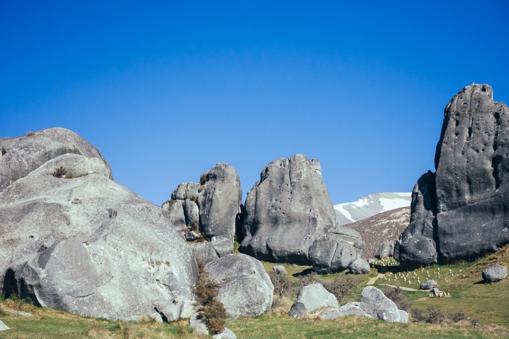 About an hour and a half out of Christchurch, if not stopping, is Castle Hill Conservation Area (Kura Tawhiti). A 20-minute loop trail leads you through the limestone rocks. Be sure to apply the sunscreen before starting, even though it may feel cold the sun beats down here.